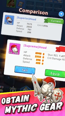 You can acquire loads of treasure chests for free through daily activities, easily opened with simple taps on the screen. The more chests you open, the higher the chance of obtaining top-tier gear and unique appearances. No need to battle monsters or complete quests to level up. Just trade in low-quality gear for experience and gold, and progress awaits!