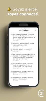 Que vous participiez à la Convention Nationale ou à l'Atelier de Management, l'application Event CENTURY 21 vous accompagne à chaque étape pour vous offrir une expérience fluide, dynamique et connectée.