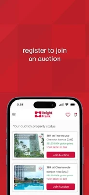 Created by Knight Frank, Singapore's leading real estate auction house, KF Bidding combines the fairness and transparency of in-person auctions with the flexibility of mobile bidding. Now, you can attend live auctions remotely and enjoy secure, convenient participation from wherever you are.