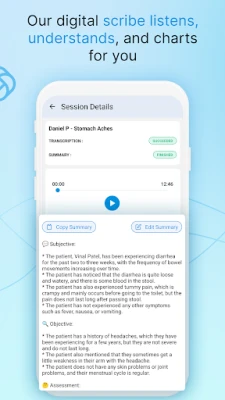 Efficient Note-taking: Say goodbye to manual note-taking. Our digital scribe listens, understands, and charts for you, ensuring every detail is captured.