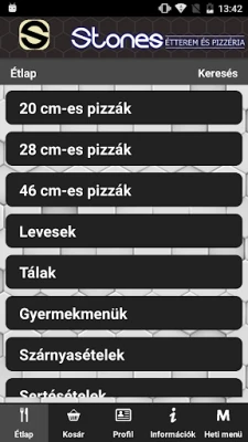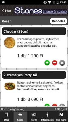 On-line rendelés ezentúl nem csak honlapunkon, hanem ezzel az Android alkalmazással is leadható. Az alkalmazásunk teljes mértékben tükrözi honlapunk szolgáltatásait: ételek kosárba helyezhetőek, kereshetőek, bejelentkezhetsz a már honlapon regisztrált felhasználóddal, vagy regisztrálhatsz új felhasználóként, megadhatsz több szállítási címet, rendeléskor választhatsz fizetési módot, megtekintheted éttermünk fényképeit és heti menü ajánlatunkat is.