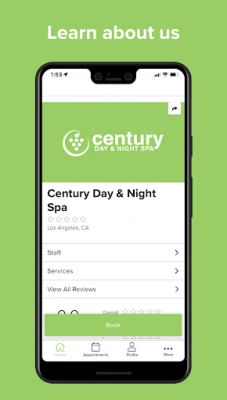 With the Century Day & Night Spa app you can: • Browse services menus and view all customizable options • Book massages and scrubs with your favorite service provider • View our business hours, contact information & other details • Purchase packages, gift cards & merchandise • Submit payment details safely and securely