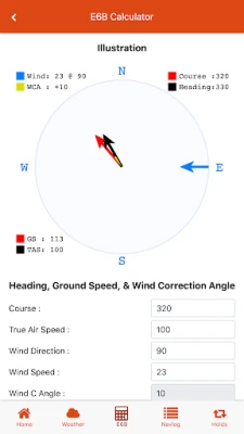This is the world’s most popular E6B aviation calculator, already used online by hundreds of thousands of pilots. The calculations are visually illustrated to aid in understanding, showing wind speed and direction, wind correction angle, course, heading, ground speed, and true air speed. E6B is also known as CR, CRP-5 or in German, as the Dreieckrechner.