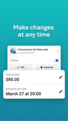 ● View detailed real-time insights from all your campaigns ● Turn campaigns on and off ● Get quick alerts to know what’s happening with all your ads ● Compare campaigns and ad sets using a side-by-side view ● Switch between Pages and ad accounts