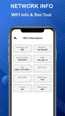 - Advanced Network information like Network Connectivity info, Network Capability info & Link Properties info, Phone Info.
