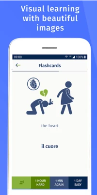 → Flashcards with eye-catching and funny pictures, which follow the principle of spaced review.