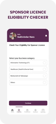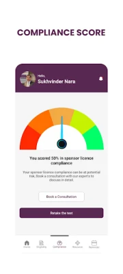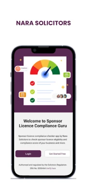 Sponsor Licence Compliance Guru - Sponsor Licence Compliance Checker app by Nara Solicitors to keep your business complaint, Check sponsor licence eligibility, compliance score of your business, Set reminders and receive notifications for your employee's visa expiries and more.