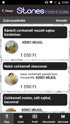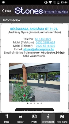 On-line rendelés ezentúl nem csak honlapunkon, hanem ezzel az Android alkalmazással is leadható. Az alkalmazásunk teljes mértékben tükrözi honlapunk szolgáltatásait: ételek kosárba helyezhetőek, kereshetőek, bejelentkezhetsz a már honlapon regisztrált felhasználóddal, vagy regisztrálhatsz új felhasználóként, megadhatsz több szállítási címet, rendeléskor választhatsz fizetési módot, megtekintheted éttermünk fényképeit és heti menü ajánlatunkat is.